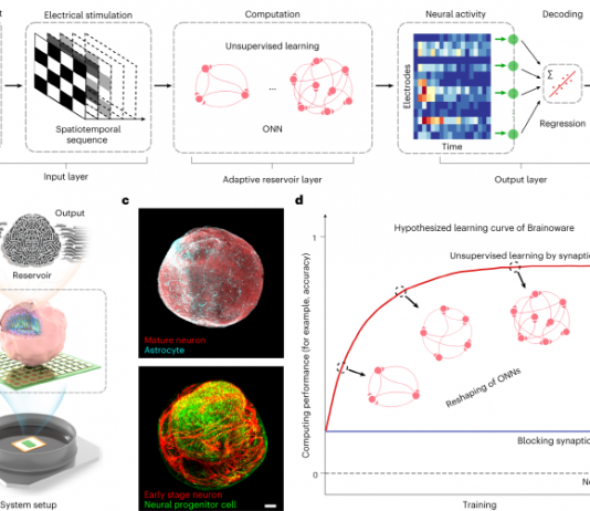 인간 줄기세포로 만든 뇌조직(미니 뇌)을 전자칩에 연결한 '브레인웨어(Brainoware)'를 구축해 간단한 계산 작업을 수행하는 데 성공했다. 인간의 뇌에는 약 8,600억 개의 뉴런과 최대 1,000조 개의 시냅스가 존재한다. 각각의 뉴런은 최대 1만 개의 다른 뉴런과 연결되어 서로 정보를 주고받는다. 최근 과학자와 엔지니어들은 이러한 뇌의 구조와 메커니즘에서 영감을 받아 하드웨어와 알고리즘을 설계하고 개발해...